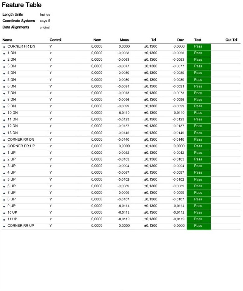 Verification of surface and structural accuracy against defined tolerances